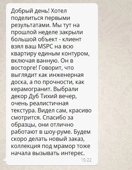 Хотим обратить внимание потенциальных партнеров из РФ и СНГ, которые хотели бы иметь в своем ассортименте mspc ламинат: все запросы, которые вы отправляете на производство в Китае, проходят модерацию в Москве. Мы готовы рассматривать поставки с брендированием под вашу ТМ: минимальная партия для заказа 10 000 м2. Для обсуждения этого вопроса свяжитесь по любому из удобных для вас каналов связи с нашей компанией.